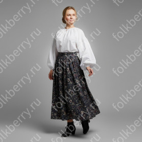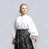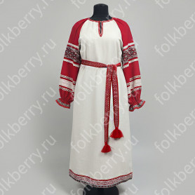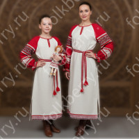 Изделие комбинированное, выполнено из ткани двух цветов – основной и дополнительной красной детали по низу рукава и рубахи.