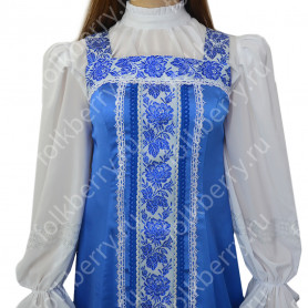 Косоворотка Оберег - выполнена из льна белого цвета, украшена жаккардовой лентой шириной 3 см синего цвета. Косоворотка смотрится стильно и современно, сочетается с современными элементами одежды, хотя содержит в себе элементы традиционного кроя и орнамента. В комплект входит пояс-кушак.