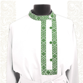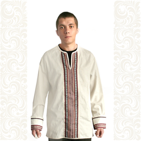 Русская народная рубаха (косоворотка) с кушаком. Изготовлена из хлопка, декорирована жаккардовой тесьмой. Яркий узнаваемый во всем мире рисунок "хохлома" и насыщенные цвета делают Косоворотку праздничной.
