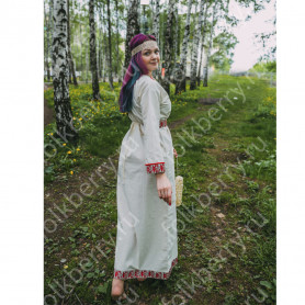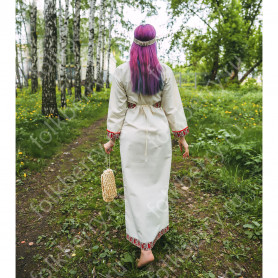 Выполнена из плотного льна, интересно украшена жаккардовым декором. Прямой свободный силуэт, воротник-стойка, втачной рукав, разрезы по боковым швам внизу, пояс в комплекте - делают рубаху удобной и комфортной. При заказе желательно указать обхват груди и рост, рубаху сошьем с учетом указанных Вами мерок.