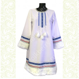 Платье «Дмитра» отрезное по талии, рукав реглан, юбка-почти солнце, длиной немного ниже колена. В комплект входит пояс. Важно, что декор платья выдержан в славянском стиле. Это платье - современное прочтение народных традиций. Женственное, удобное и нарядное, оно дарит ощущение радости и праздника. По стилю замечательно подходит для тематических праздников в детских  учебных заведениях, по фасону и яркости цветов отлично подойдет для танцевальных коллективов.  как правило, дети не стесняются надевать его ( в отличии от длинного русского сарафана ) Платье выполнено из немнущейся, матовой ткани "габардин" символичных для славян цветов ( красного, синего, зеленого, бордового).