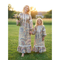 Фасон: Длина – чуть ниже колена, регулируемая горловина, немного завышенная талия,  рукав – реглан, юбка – 3/4 солнца, пояс в комплекте.