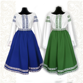 Платье «Кадриль» предназначено для выступлений танцевальных, театральных, художественных коллективов. Выполнено в традиционном стиле.