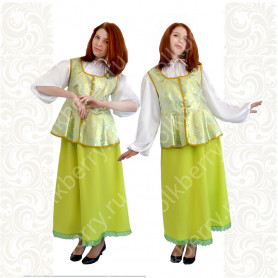 - Пояс с баской; застежка на две пуговицы, что дает возможность регулировать пояс по объему талии.