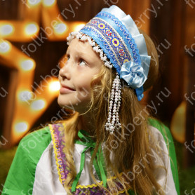 Для завершения образа на нашем сайте можно подобрать красивый и удобный кокошник в сине-серебристых тонах.