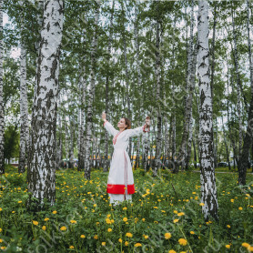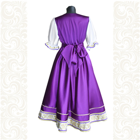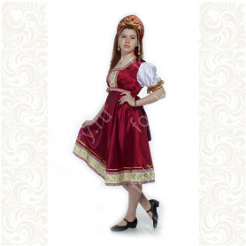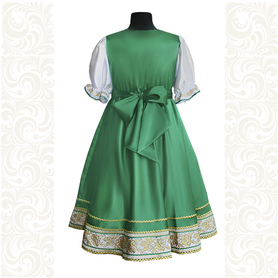 Платье «Гжель», выполненное в благородных оттенках синего цвета удачный наряд для любого праздника. Благодаря продуманному дизайну и качественному исполнению, модель идеально подходит для участниц танцевальных, хоровых и народных коллективов.