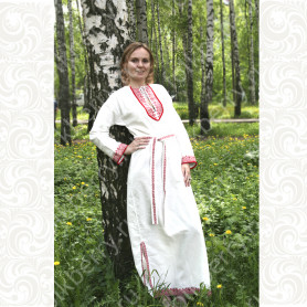 Платье сшито из натурального, умягченного льна с рисунком «Гжель».