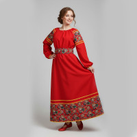 Платье "Вологда" выполнено из льняной ткани, декорировано натуральным кружевом и машинной вышивкой.