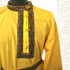Рубаха Русский Стандарт сшита из плотного 100 % льна благородных цветов. Горловина украшена воротником-стойкой, посредине груди - планка с застежкой, рукав втачной с манжетами на пуговицах. Рубаха немного укороченная, без пояса. Благодаря фасону и плотной ткани, рубаха смотрится свежо и стильно с джинсами, и другими деталями современной одежды. Рубаха Русский Стандарт - прекрасно подойдет мужчинам для повседневной носки, а также будет выиграшно смотреться на праздничных мероприятиях.