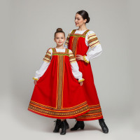 Эта традиционная женская рубаха ( длинная туника с поликами под мышками, с разрезами по бокам, с поясом) из белого льна. Декорирована по низу рукава, подолу и на груди широкой жаккардовой тесьмой с гжельскими мотивами сине-голубого цвета на белом фоне.