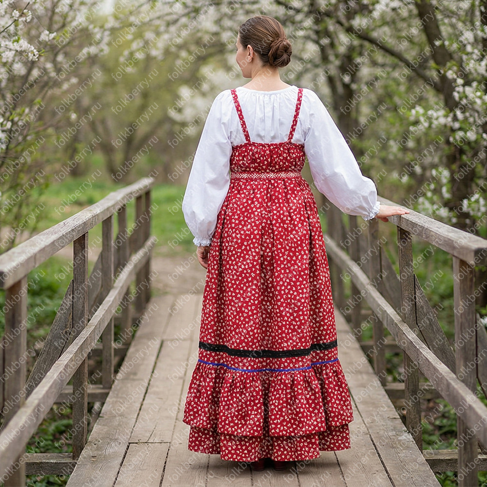 Сарафан с блузой Русь сарафанная. Кострома, хлопок, красный —поэзия русской традиции
