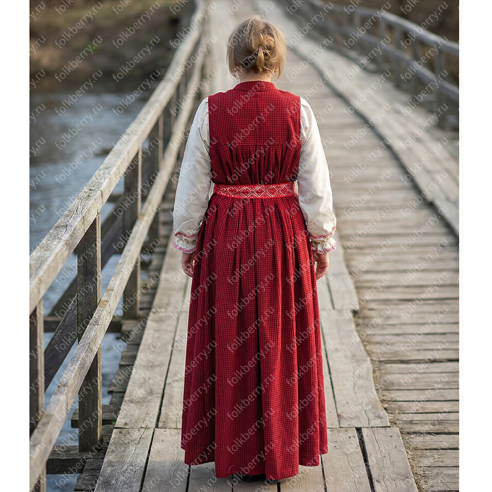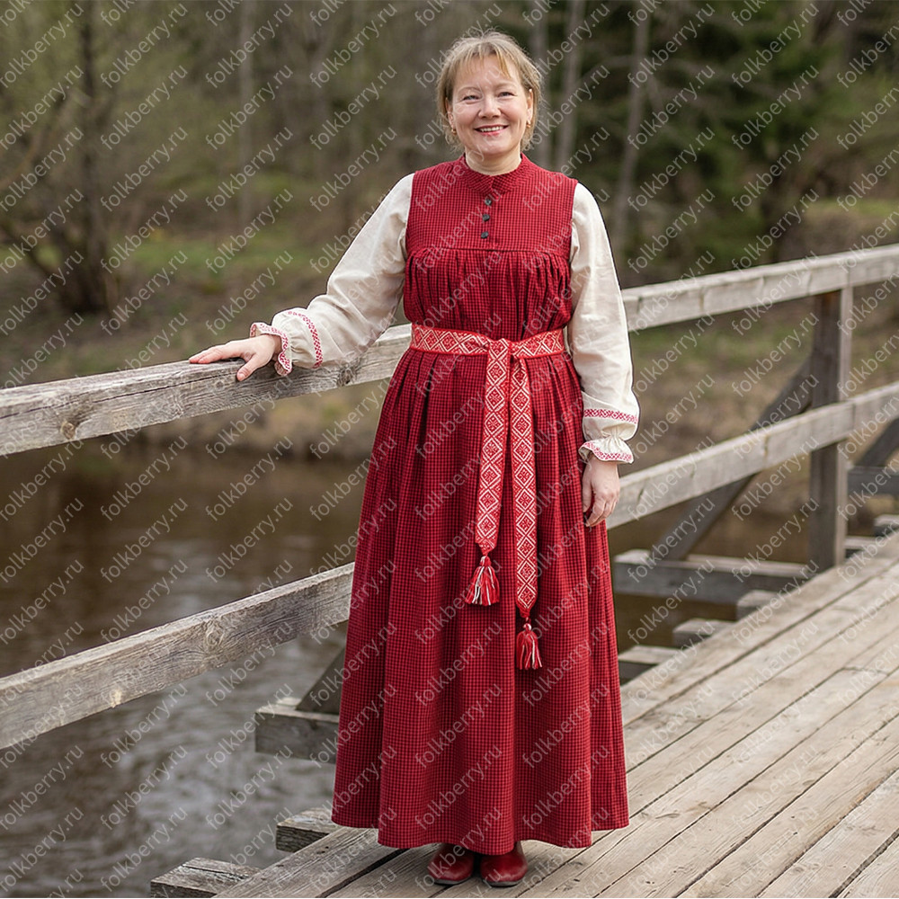 Сарафан с блузой Русь сарафанная. Вологда, хлопок, красный — память русской традиции.