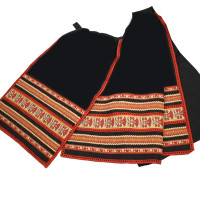 Ансамбль дополняет длинный тканый пояс с декоративными кисточками — он подчеркнёт талию, поможет создать нужный силуэт и превратит повседневный образ в праздничный, а праздничный — в церемониальный.