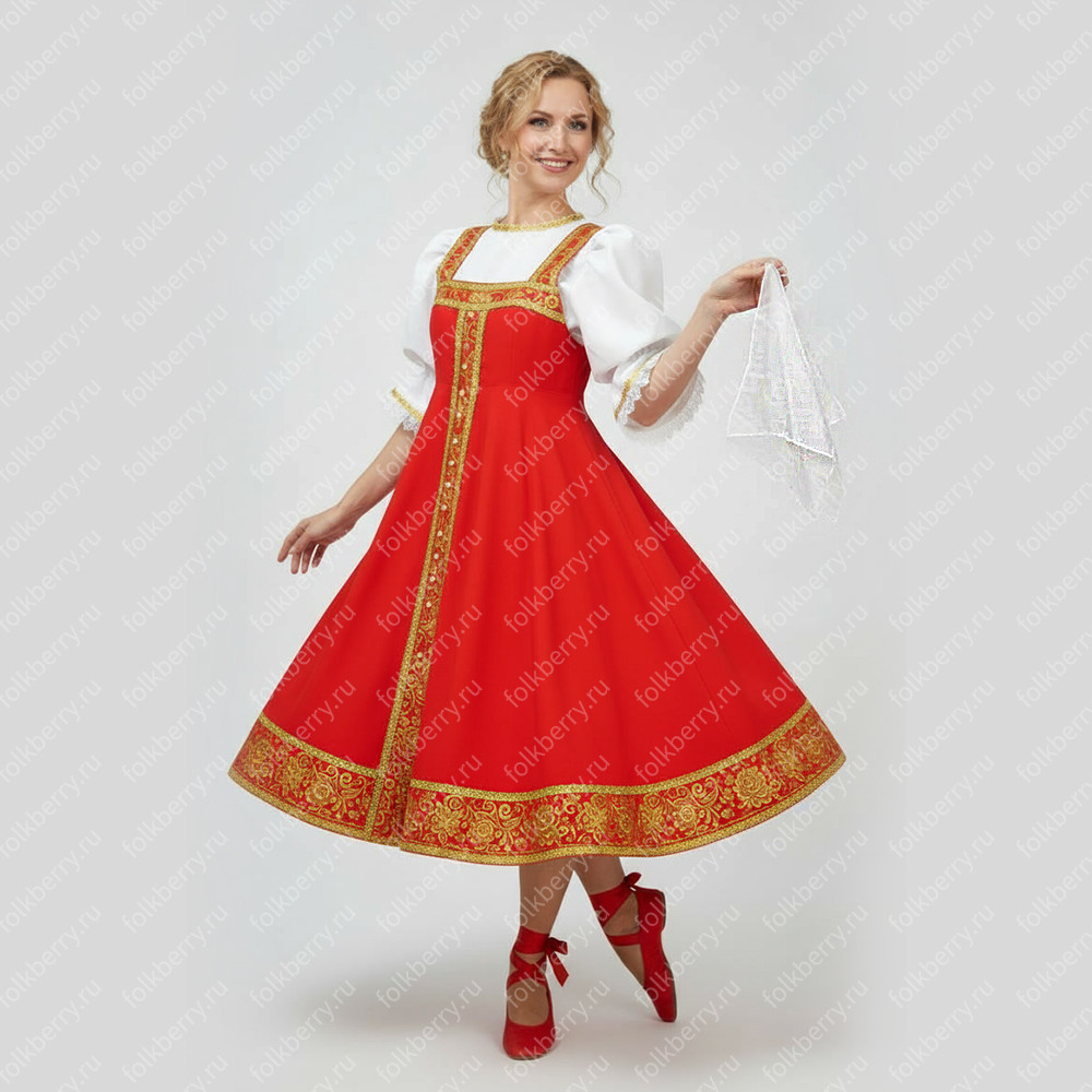 Сарафан с блузой «Аленушка » – яркий наряд в духе народных традиций. Оригинальный дизайн, красивые оттенки синего, бирюзового, белого цветов, качественное исполнение комплекта порадуют Вас. Это хороший выбор для участников танцевально-театральных коллективов.