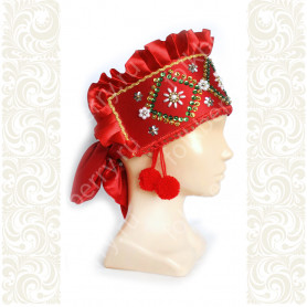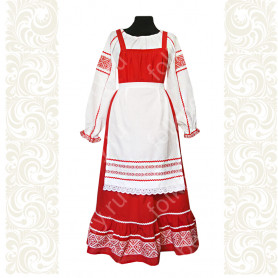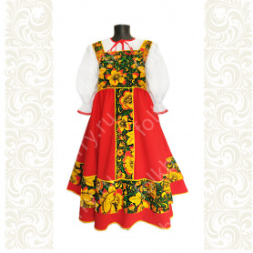 Декор по мотивам рисунков знаменитого художника 19 века Ивана Билибина. Цвет сарафана - насыщенный благородный красный, перекликается с цветом декора.